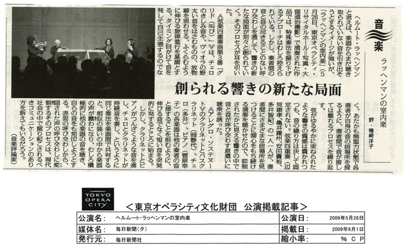 - 2009, Helmut Lachenmann - Allegro Sostenuto & String Quartet No.3, Tokyo Opera City Composium review