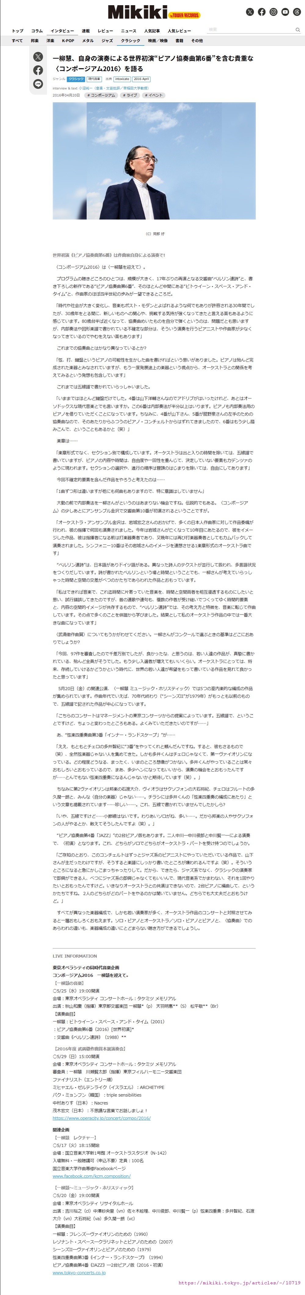 - 2012, world premiere - Masamichi Kinoshita “Question et Flamme II”, Ichiro Saito, Central Aichi Symphony Orchestra, Tosiya Suzuki, Sumida Triphony Hall, Tokyo soundcloud