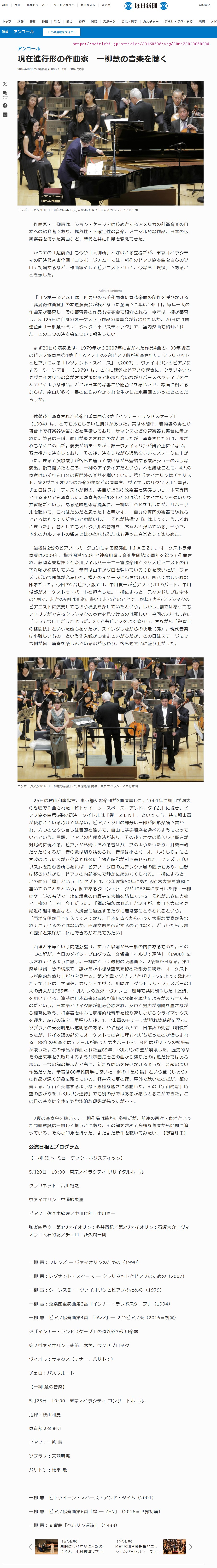 - 2014, Suntory Summer Festival, Tokyo, world premiere - Toshi Ichiyanagi “時の佇まい”(軋箏)